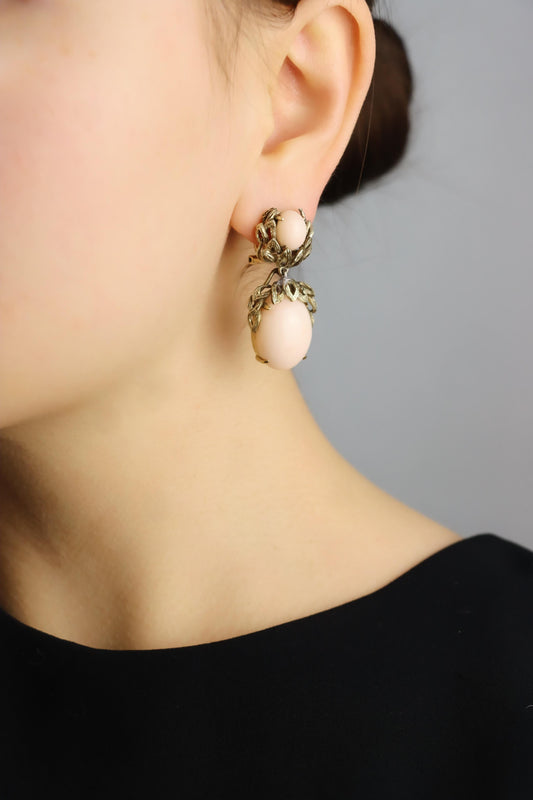 Vintage 14K Gold Coral Cabochon Earrings