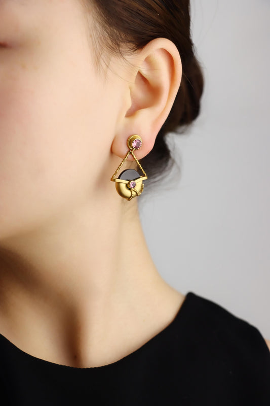Vintage 18K Gold Tourmaline Onyx Earring