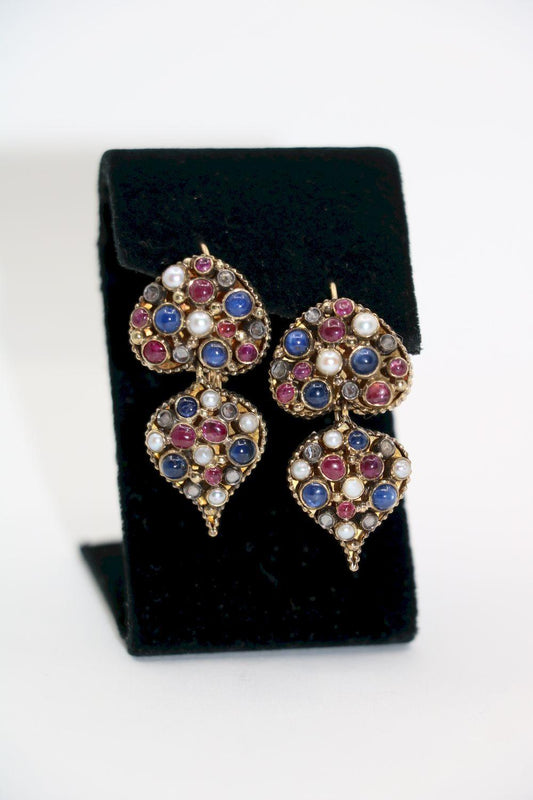 Vintage 22K Gold Indain Mughal Gem Set Earrings