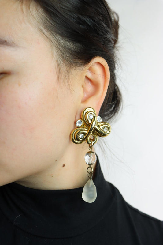 Vintage Valentino Gold & Silver Tone Triple Pierced Rhinestone Earrings