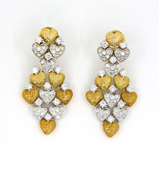 Vintage 18K Gold Heart Shape Diamond Earrings