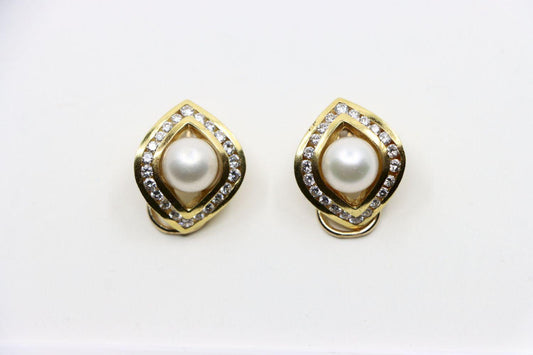 Vintage Maico 18K Gold Pearl Diamond Earrings