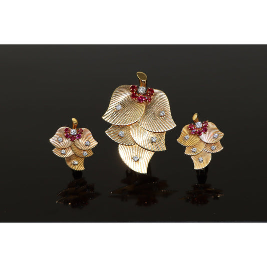 Retro George Schuler Tiffany & Co. Ruby & Diamond Earrings Brooch Set