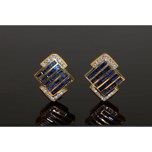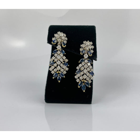 Vintage Pair of 14k Gold 4.75 Carat Diamond Sapphire Earrings