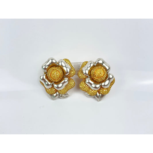 Vintage SUNA 18K Gold Diamond Flower Earrings