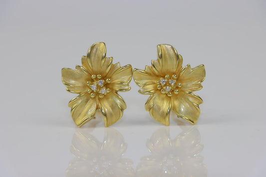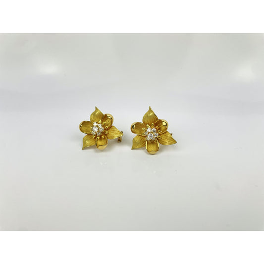 Pair of Tiffany & Co. Classic Collection 18k Gold Diamond Dogwood Flower Earrings