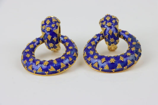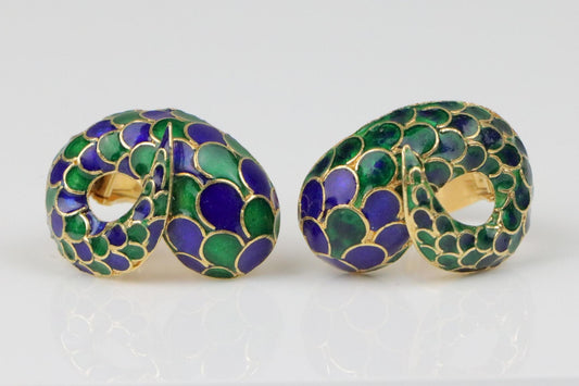 Vintage Lalaounis 18K Gold Enamel Earrings