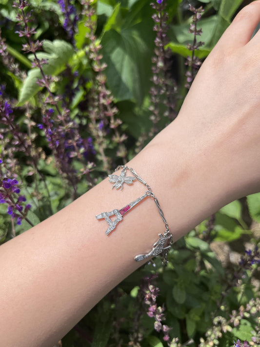 Art Deco Platinum Ruby Diamond Charm Bracelet