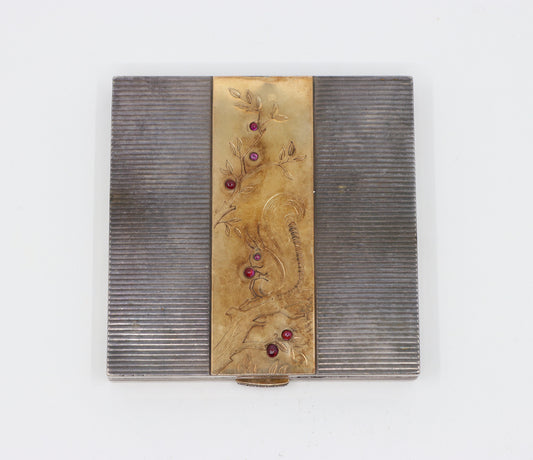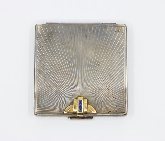Black Starr & Gotham Art Deco Silver & 14K & Sapphire Compact