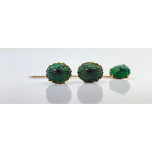Victorian Era Egyptian Revival 14k Gold Scarab Stick Pin Button Set