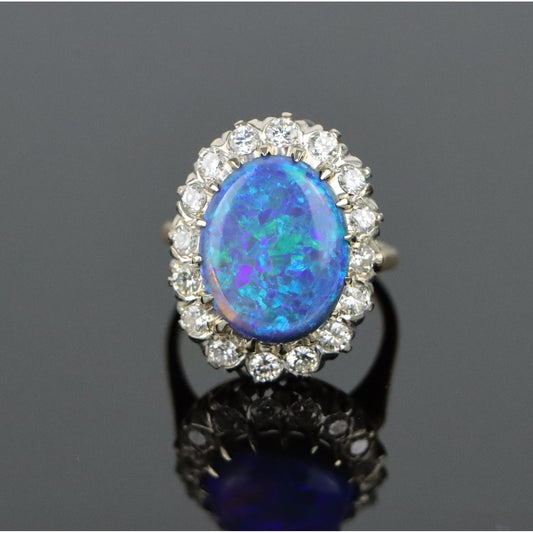 Mid Century 5.88 Carat Black Opal and Diamond Ring
