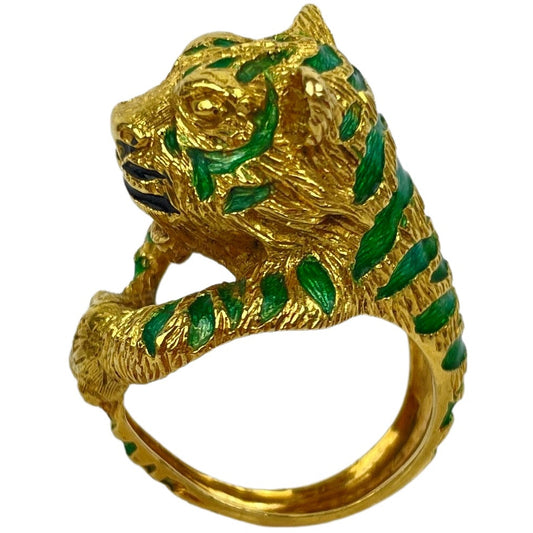 Sold outVintage 18k Gold Enameled Tiger Ring