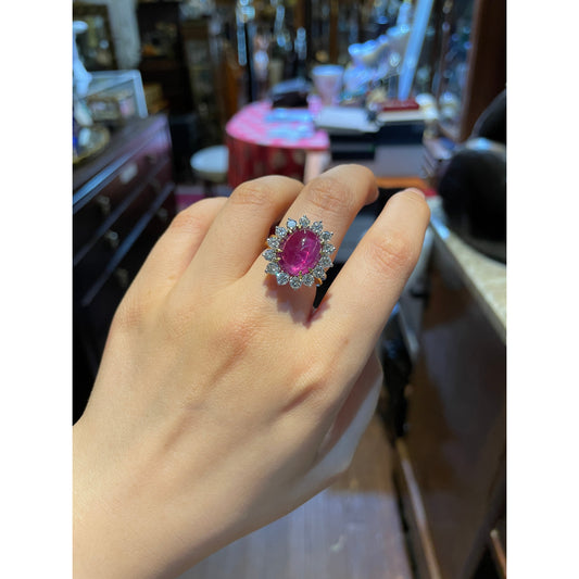 GIA Certified Ceylon Pink Sapphire Cabochon 18k Gold Ring