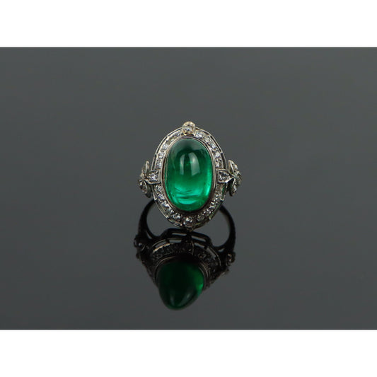 Art Deco GIA Certified Emerald Cabochon Platinum Ring