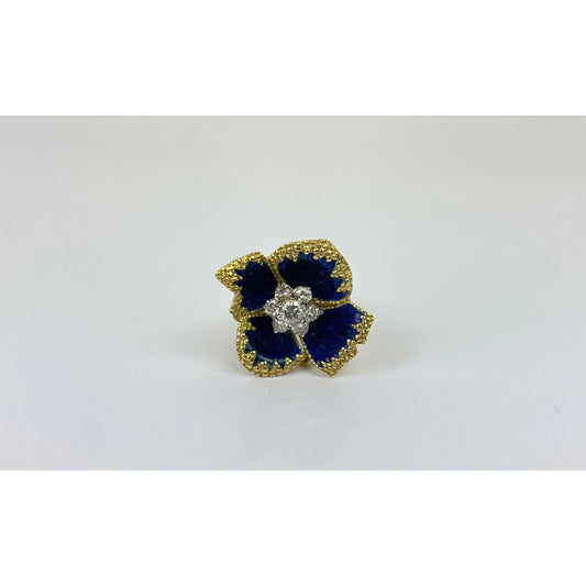 Vintage Italian Corletto 18k Gold Diamond Enamel Ring