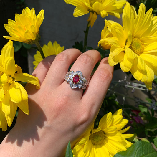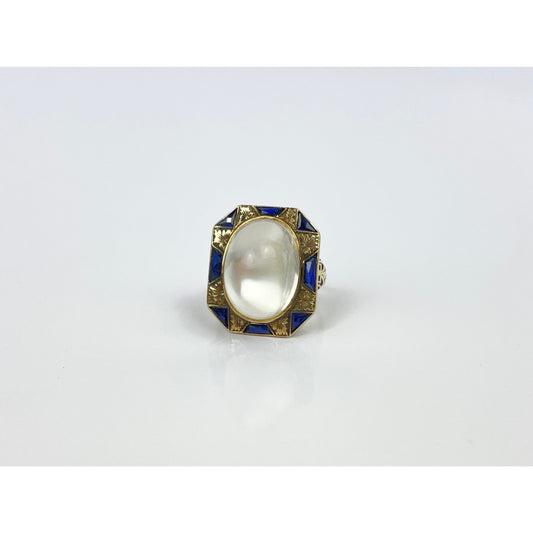 Art Deco 14k Gold Moonstone Cabochon Sapphire Ring