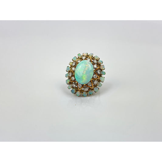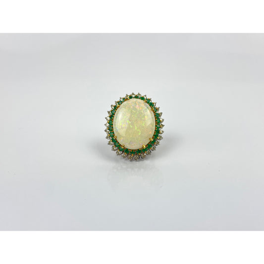 14K Gold Opal Cabochon Diamond Emerald Ring