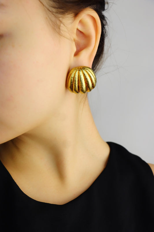 David Webb 18K Gold Hammered Finish Bombe Earrings