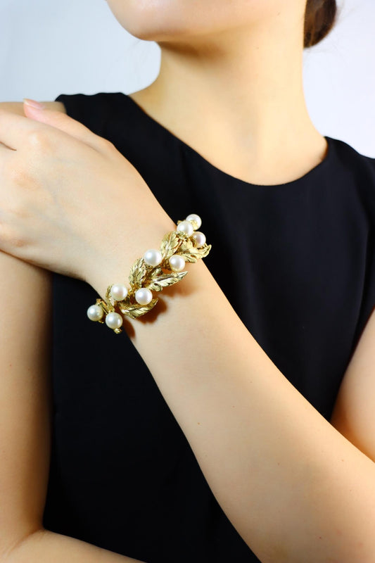 Buccellati 18K Gold Leaf Motif Pearl Bracelet
