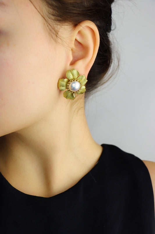Tiffany & Co. 18K Gold Pearl Flower Earrings