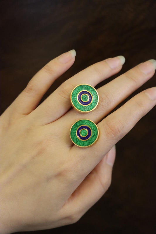 David Webb 18K Gold Green & Blue Enamel Cufflinks