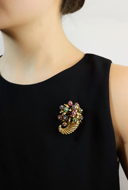 Retro Tiffany & Co. En Tremblant Gem Set Gold Brooch Pin