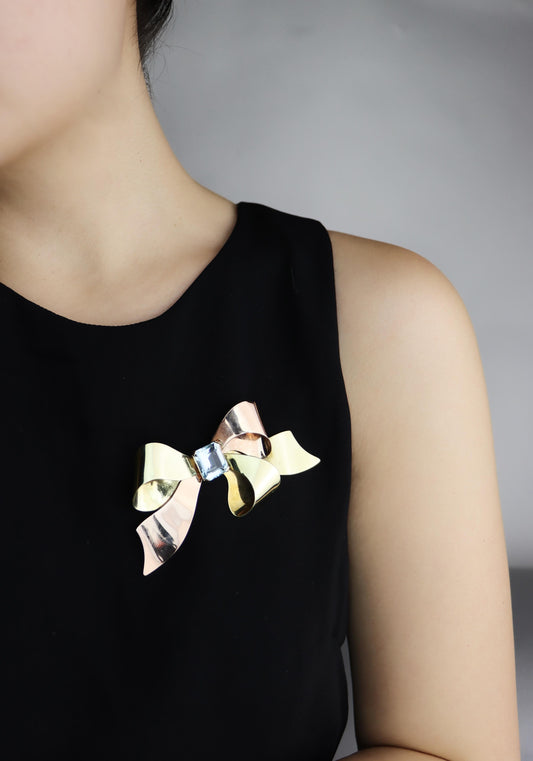 Retro Tiffany & Co. 14K Gold Aquamarine Bow Tie Brooch