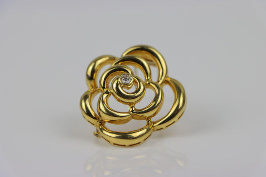 Vintage Van Cleef & Arpels Diamond 18K Gold Camellia Flower Brooch Pin