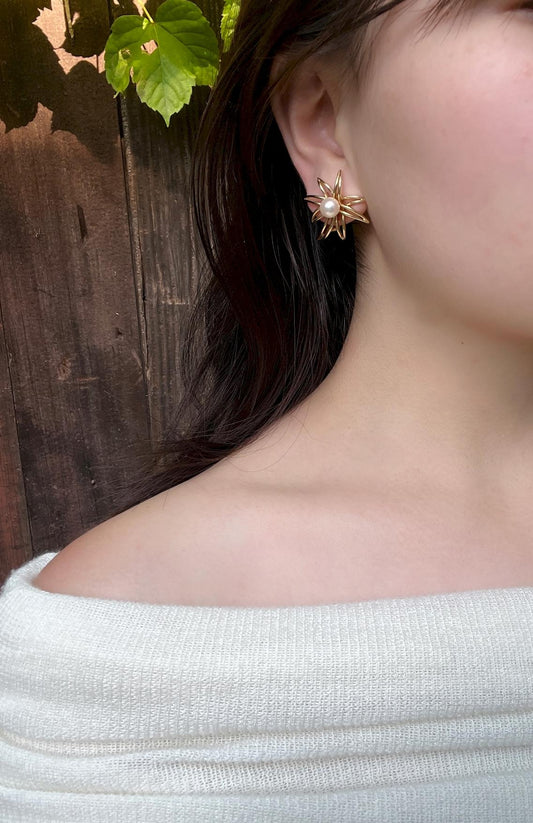 Tiffany & Co. 18K Gold & Pearl Firework Earrings