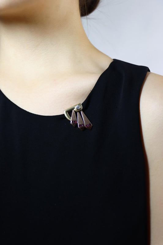 Cartier 14k Yellow & Rose Gold Diamond Ruby Clip