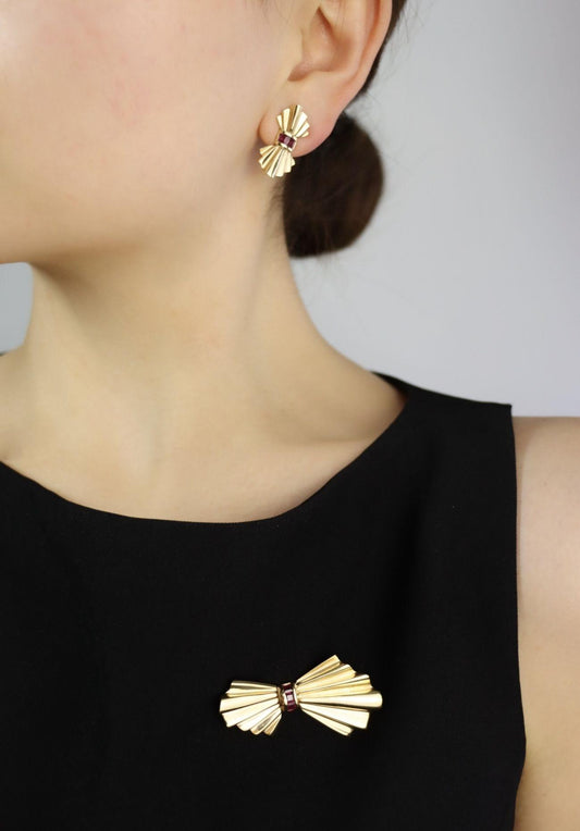 Tiffany & Co. 14K Gold Ruby Bow Clip Earrings & Brooch