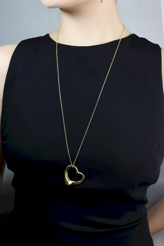 Tiffany & Co. 18K Gold Elsa Peretti Open Heart Pendant Necklace