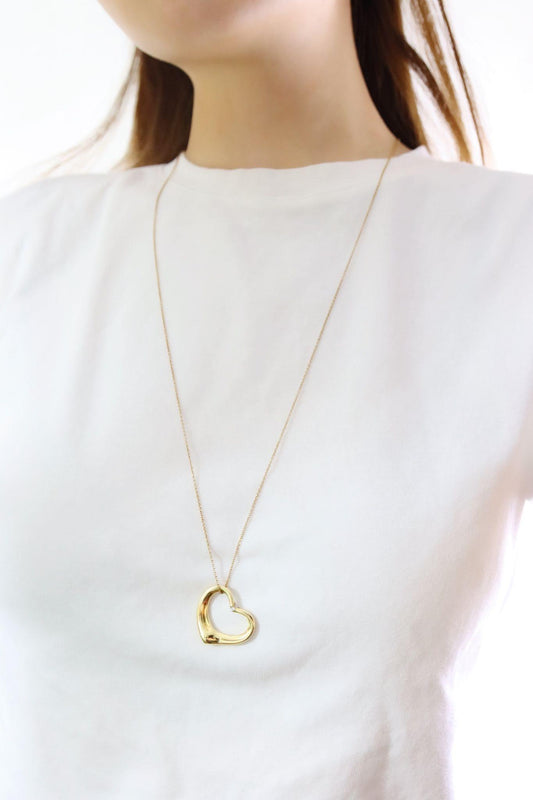 Tiffany & Co 18K Gold Elsa Perreti Diamonds Heart Pendant Necklace