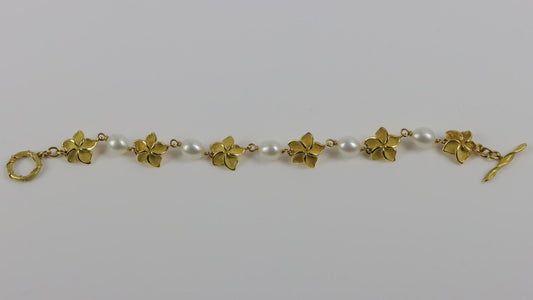 Vintage Tiffany & Co 18K Gold Flower Pearl Bracelet