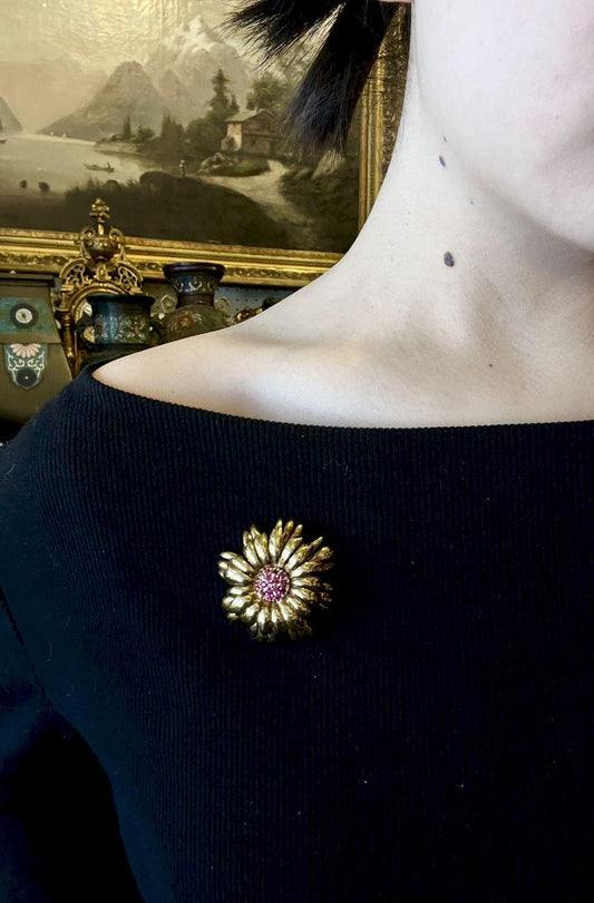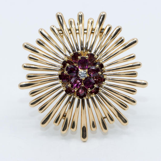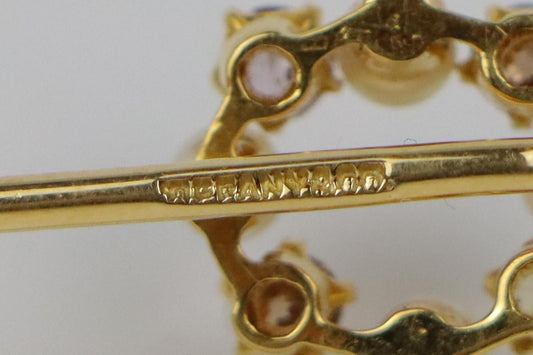 Retro Tiffany & Co 14K Gold Amethyst Diamond Flower Brooch Pin