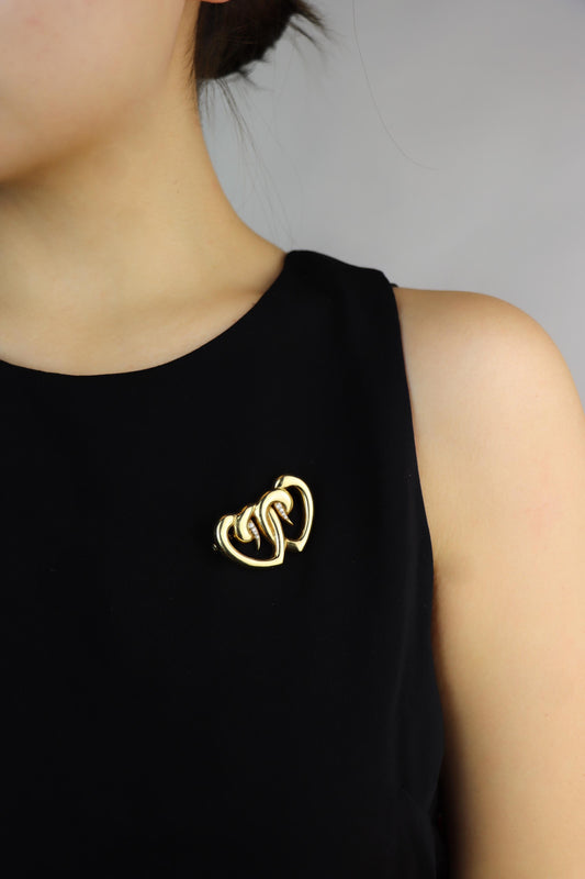 Tiffany & Co. 18K Gold Diamond Paloma Picasso Double Heart Brooch
