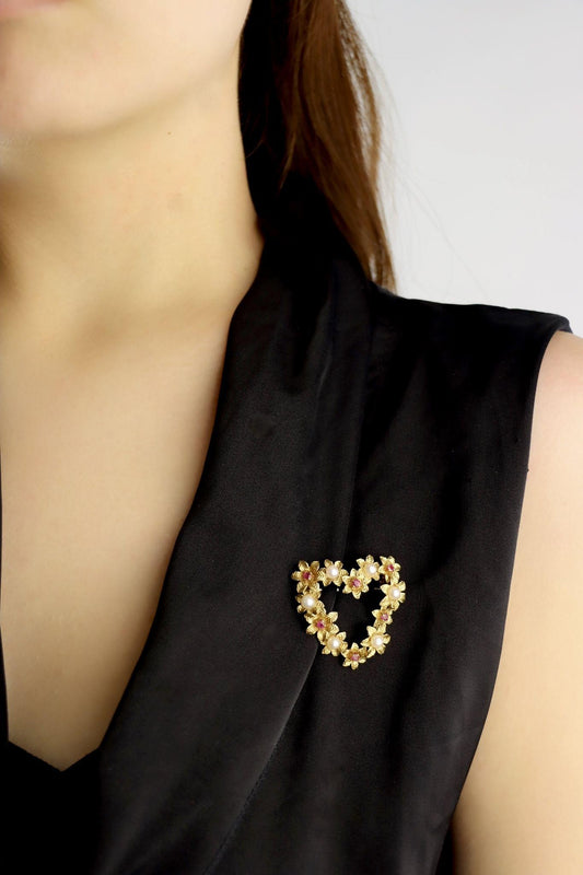 Vintage Tiffany & Co. 18k Gold Ruby Pearl Heart Brooch Pin