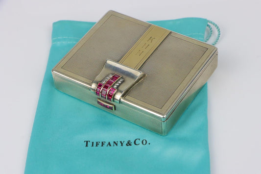 Retro Tiffany & Co. 14k Gold and Silver Ruby Compact Powder Case