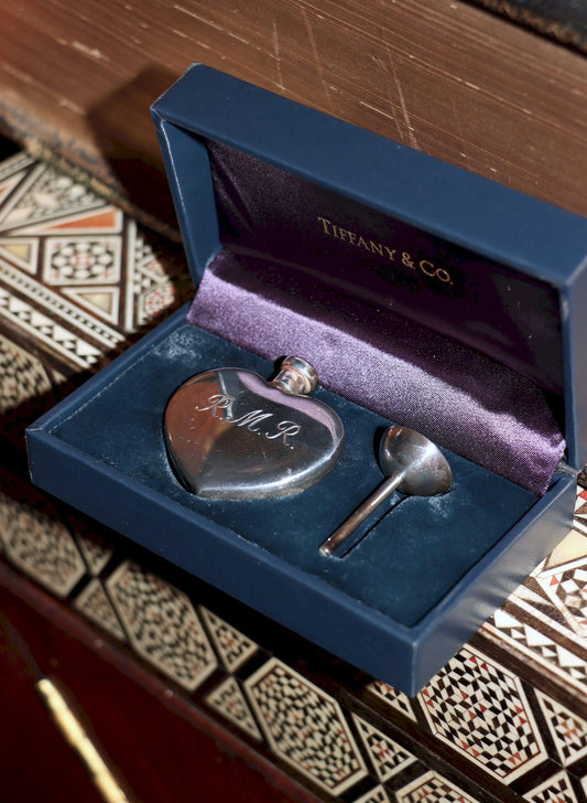 Tiffany & Co. Sterling Silver Heart Shape Perfume Bottle & Funnel