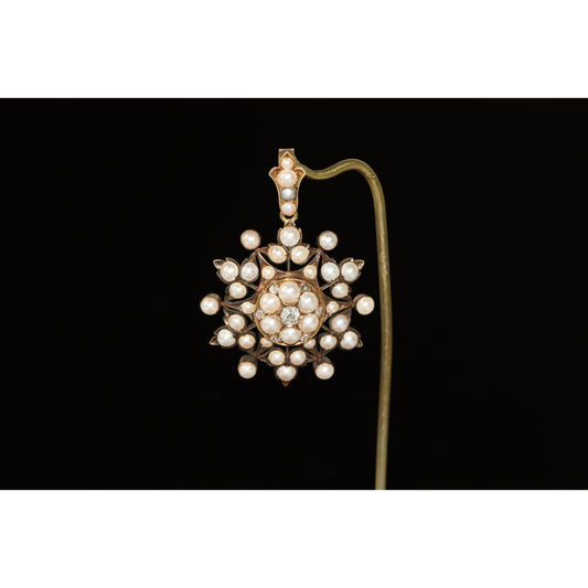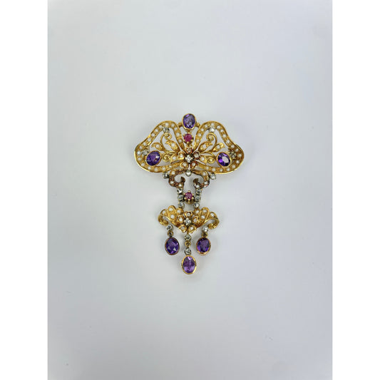 Victorian Pearl Amethyst Diamond Pendant Brooch