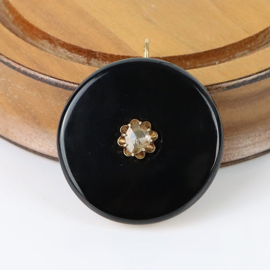 Victorian 14K Gold, Onyx & Diamond Mourning Pendant