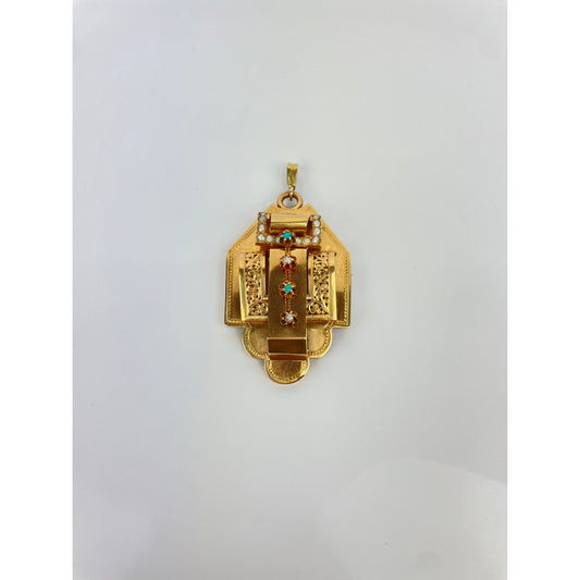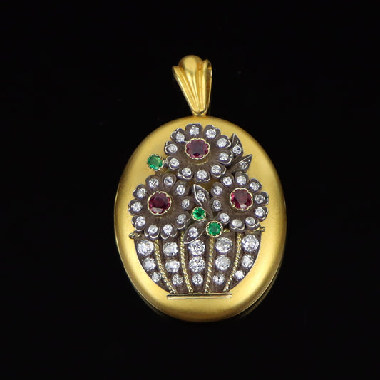 Victorian Diamond Ruby and Emerald Locket Pendant