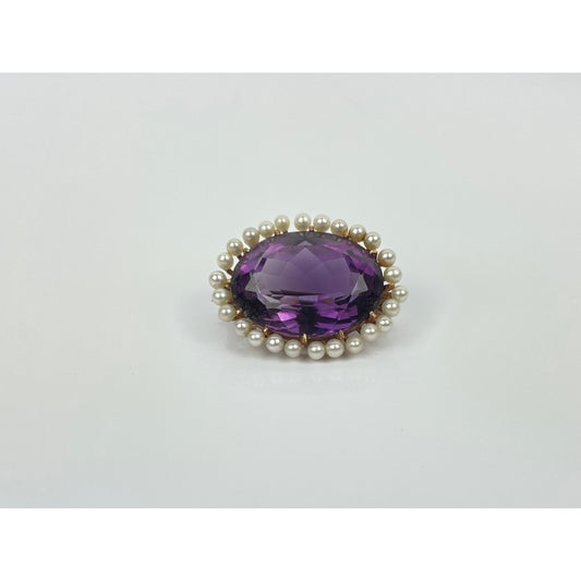 Victorian 14k Gold Amethyst Pearl Brooch Pin