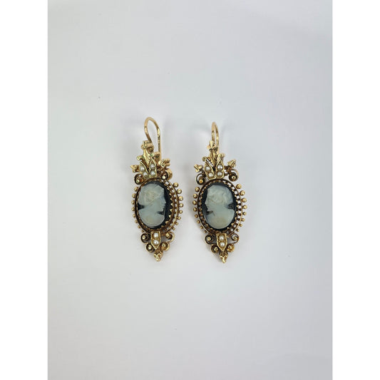 Pair of Victorian 14k Gold Pearl Cameo Earrings
