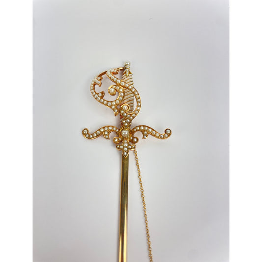 Victorian 14k Gold Seed Pearl Sword Brooch Pin