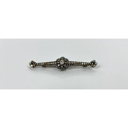 Victorian Gold & Silver Rose Cut Diamond Brooch Pin