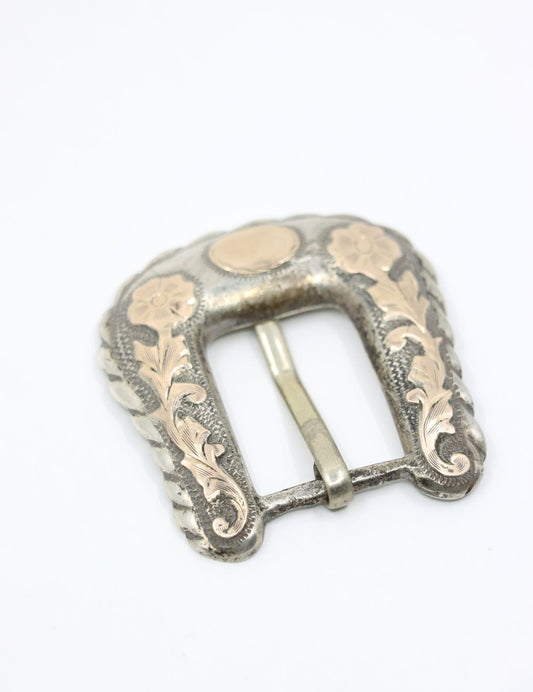 Vintage 10K Gold & Sterling Engraved Belt Buckle