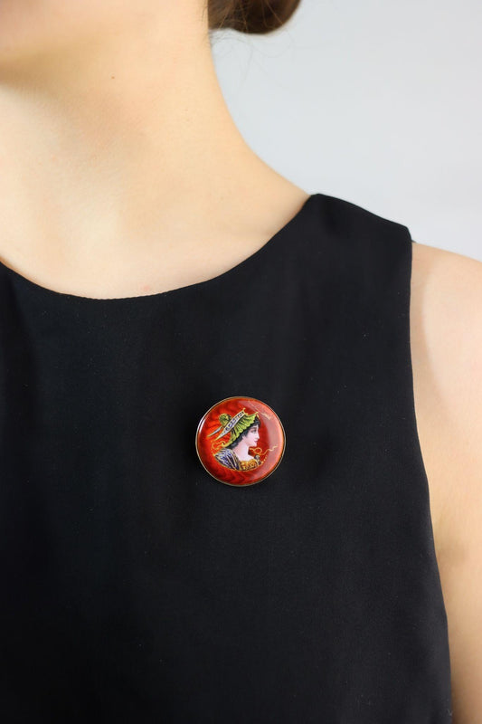 Vintage 14K Gold Enamel Painted Brooch Pin