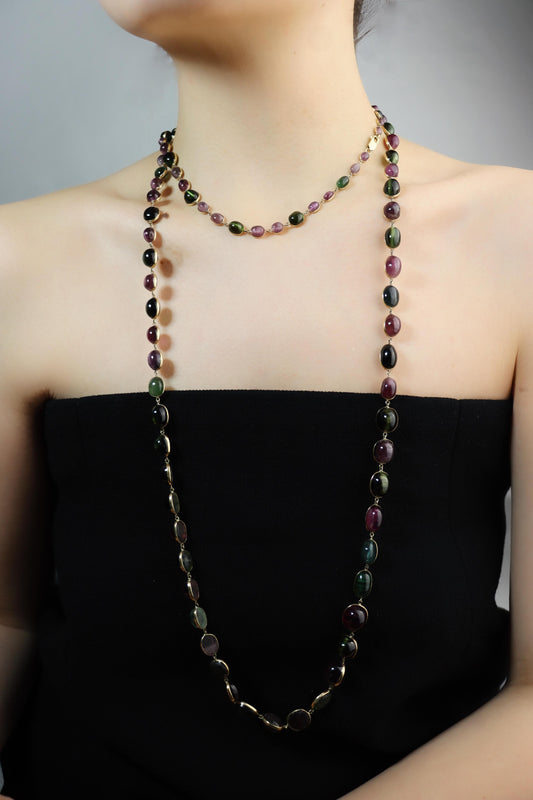14K Gold Mix-Cut Amethyst Moonstone Necklace