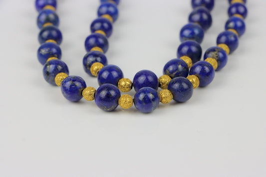 Sold outVintage 14K Gold Lapis Bead Necklace